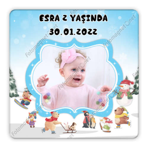 عيد ميلاد بموضوع الشتاء - مربع - ذاكرة - مغناطيس