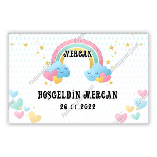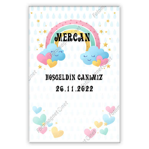 بطاقة قوس قزح - ترحيب الطفل - مربع - تذكار - مغناطيس