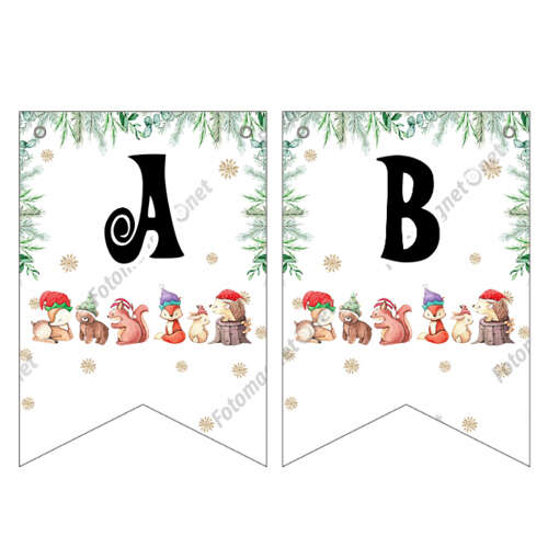 ملصق مربع بموضوع الشتاء والحيوانات اللطيفة