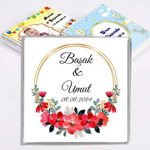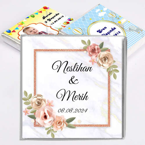 Ürünümüz sadece etiketlerden oluşur, çikolata dahil değildir. Seçtiğiniz çikolataları kendi zevkinize göre alarak bu etiketlerle kaplayabilir, davetlilerinize şık ve kişisel bir hediye sunabilirsiniz.