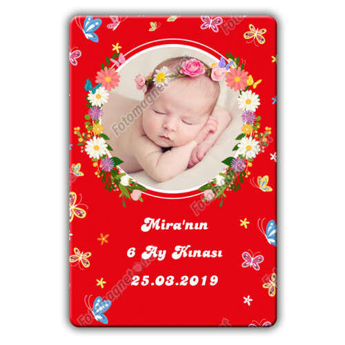 موضوع الفراشة الحمراء 6 شهور حناء - تذكار - مغناطيس