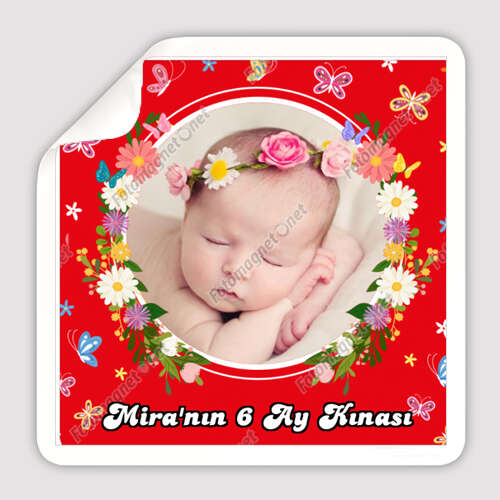 موضوع الفراشة الحمراء 6 شهور حناء - مربع - مغناطيس