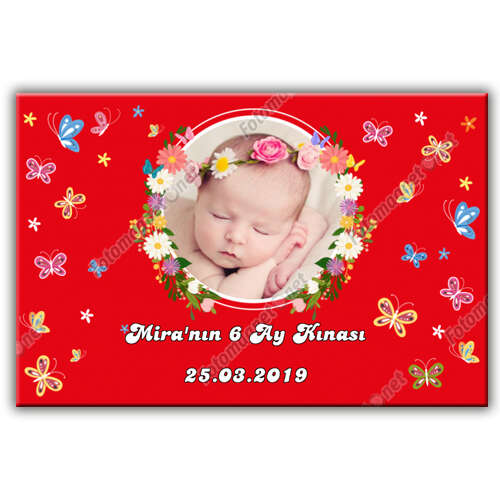 موضوع الفراشة الحمراء 6 شهور حناء - لافتة - علم - مزدوج