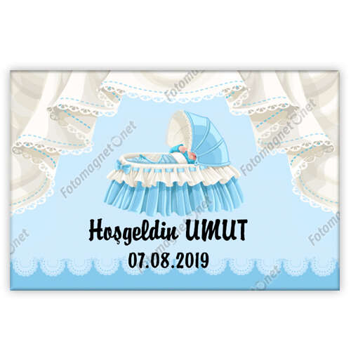 مهد أزرق اللون - مرحبا بالطفل - مربع - هدية تذكارية - مغناطيس