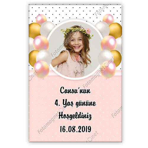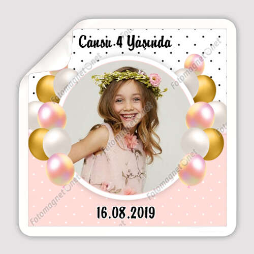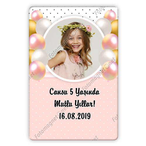 موضوع بالونات ذهبية ووردية - تذكار - مغناطيس