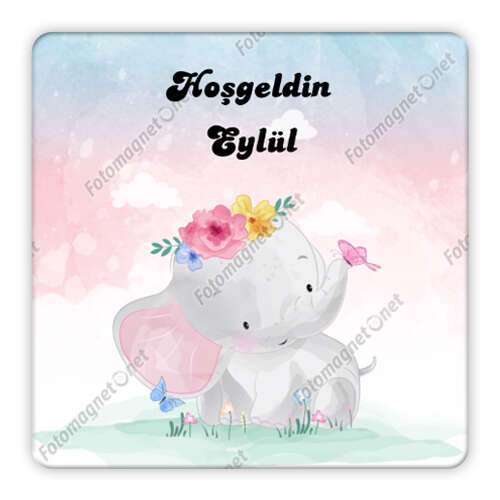 ثيم الفيل الطفل لطيف - مرحبا بك طفل - مربع - مغناطيس