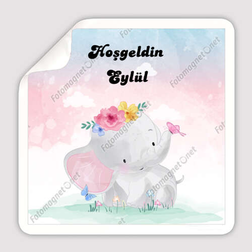 ثيم الفيل الطفل لطيف - مرحبا بك طفل - مربع - لصقة