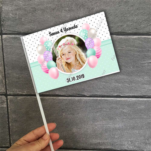 بالون وردي أخضر - أفقي - صورة - بوستر - زينة باب