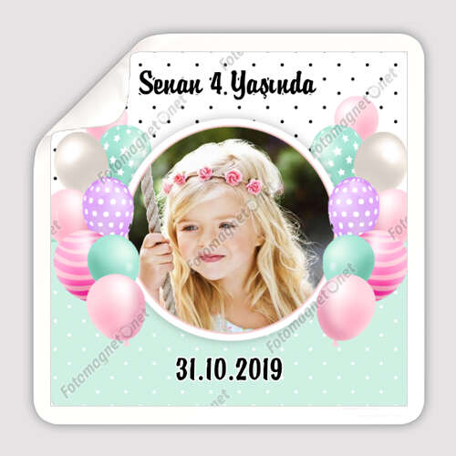 بالون وردي أخضر - صورة - مغناطيس - فتاحة زجاجات
