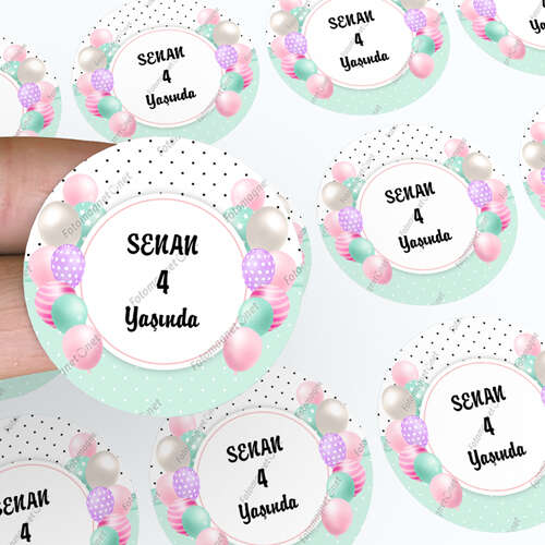 بالون وردي أخضر - تسمية شوكولاتة مغلفة