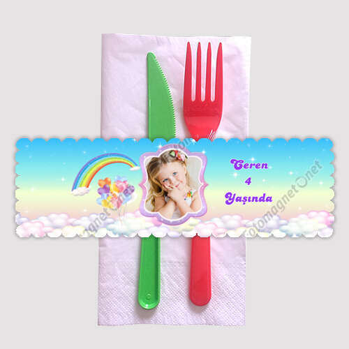 كوب ورقي بتصميم قوس قزح وملصق للتغليف