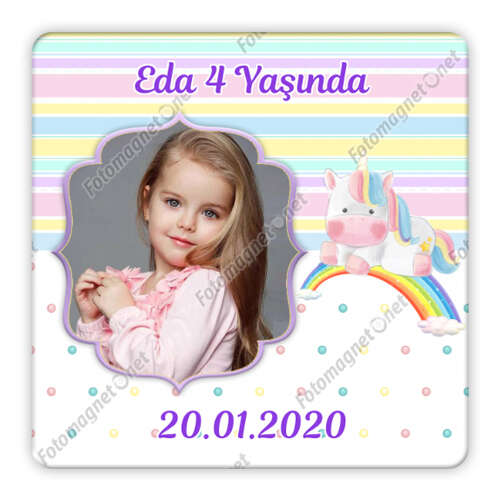ثيمة الحصان السحري والقوس قزح - مربع - تذكار - مغناطيس