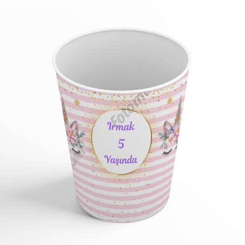 كوب ورقي بتصميم حصان السلحفاة الوردي والذهبي - تسمية لف