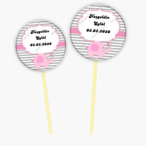 وردي رمادي موضوع الفيل - مرحبًا بالطفل - بدون صورة - مظلات سنانير