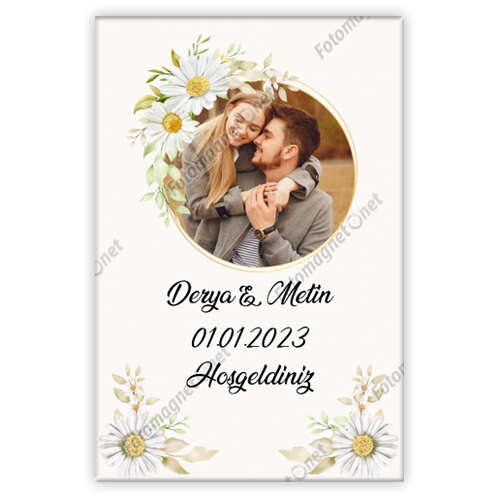 مفهوم الزفاف والخطوبة بموضوع البابونج - هدية تذكارية - مغناطيس