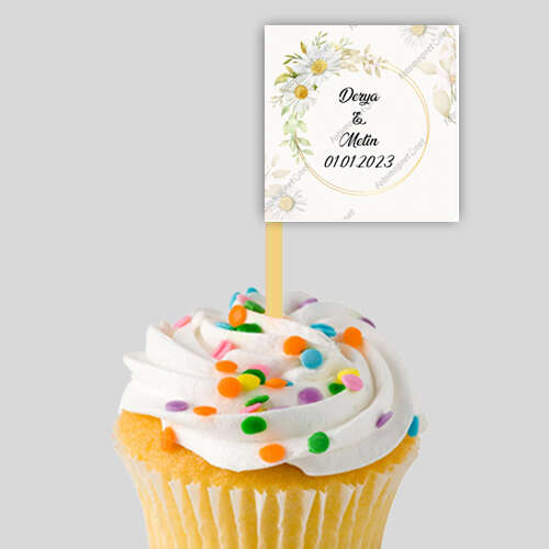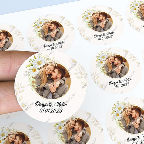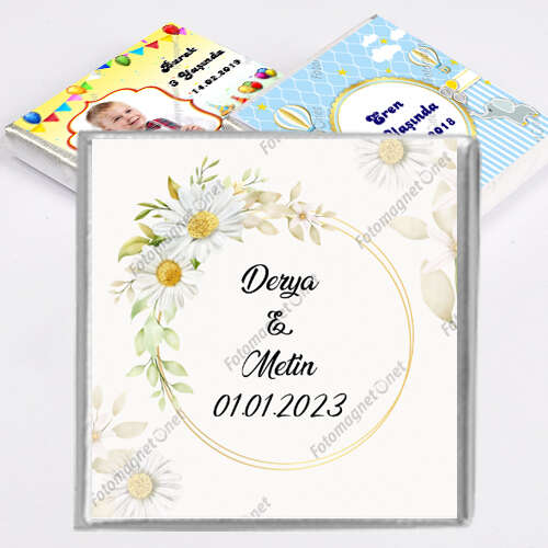 مفهوم الزفاف والخطوبة بموضوع البابونج - مربع - شوكولاتة - تغليف الملصقات