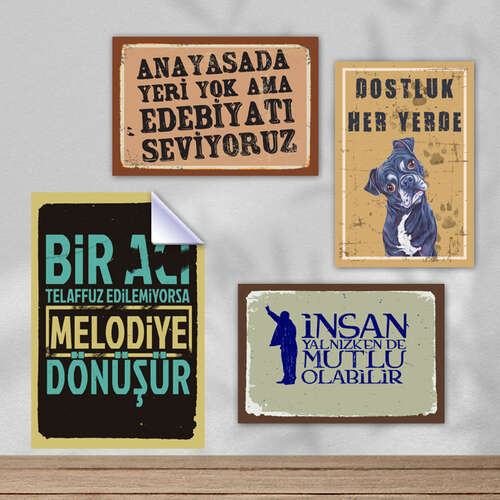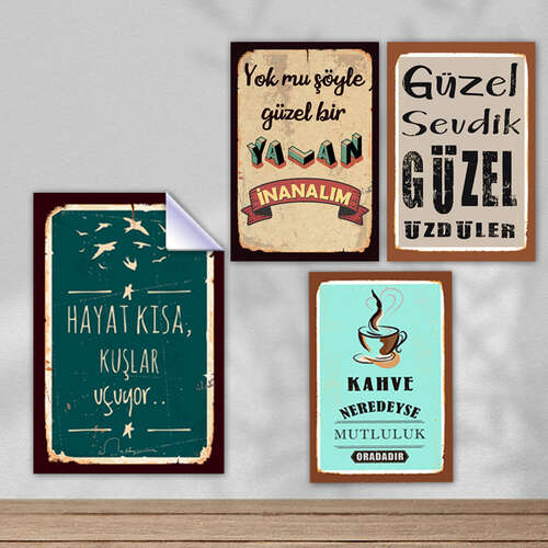تصميم ريترو - ملصق - ليبل - مجموعة من 4 قطع 4