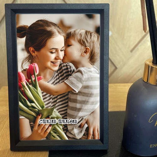 صورة بإطار أسود بحجم 10x15 سم عدد 6 قطع ونص "أمي" بالقلب