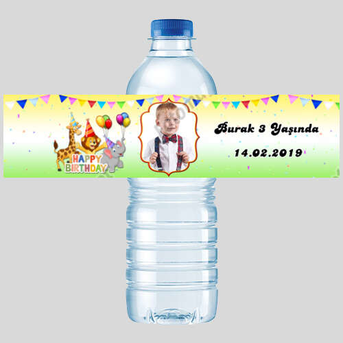 تسمية زجاجة بموضوع فيل أصفر رمادي لطيف