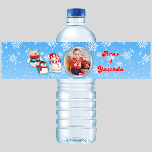 تسمية زجاجة بموضوع رجل الثلج والأصدقاء اللطفاء