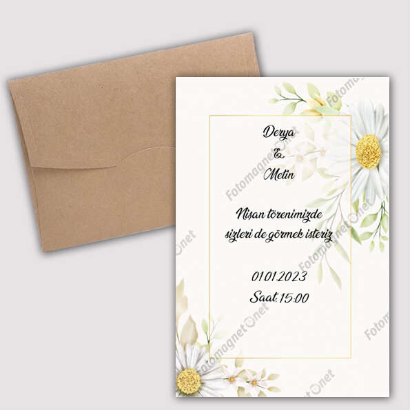 دعوة زفاف وخطوبة بموضوع البابونج بظرف