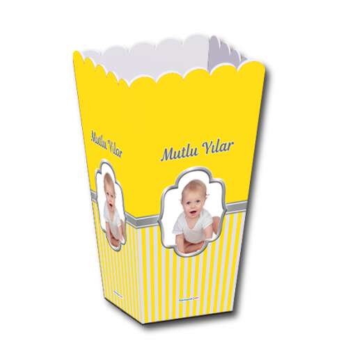 صندوق الفشار بإطار فضي لعيد ميلاد