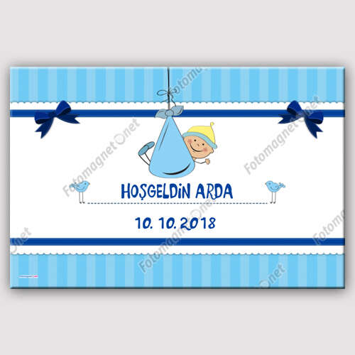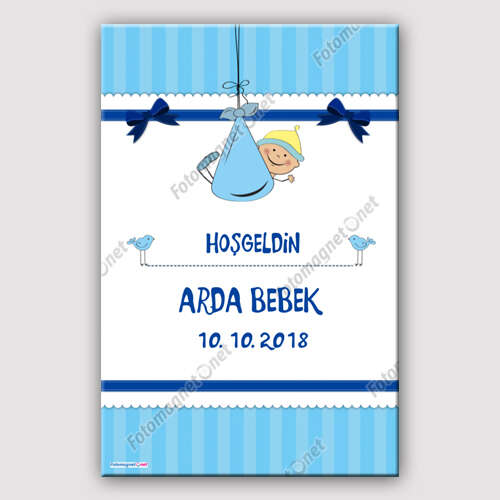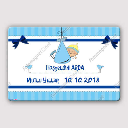 أزرق - ترحيب بالطفل - أفقي - تذكار - مغناطيس