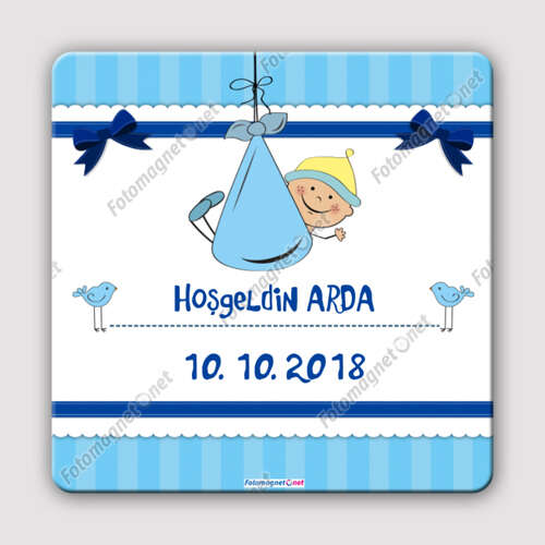 أزرق - ترحيب بالطفل - تذكار - مغناطيس