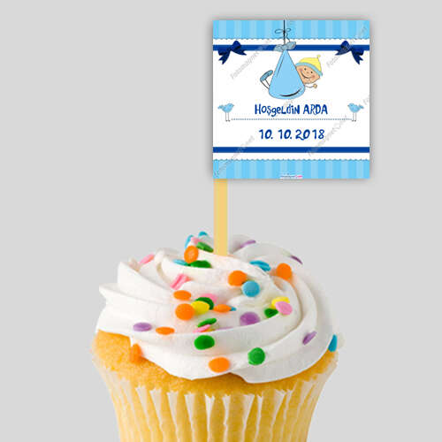 أزرق - مرحبًا بالطفل - علم ورقي