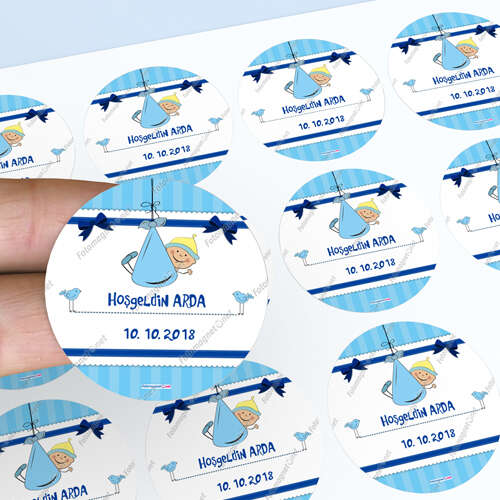 أزرق - مرحبًا بالطفل - ملصق زجاجة