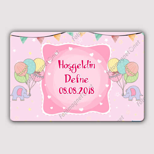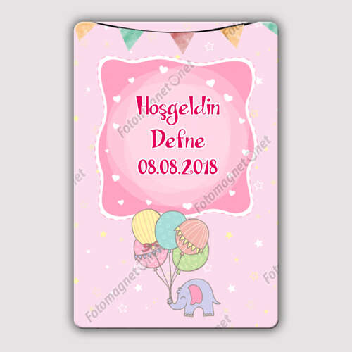موضوع فيل البالون الوردي - مرحبًا بالطفل - تذكار - مغناطيس