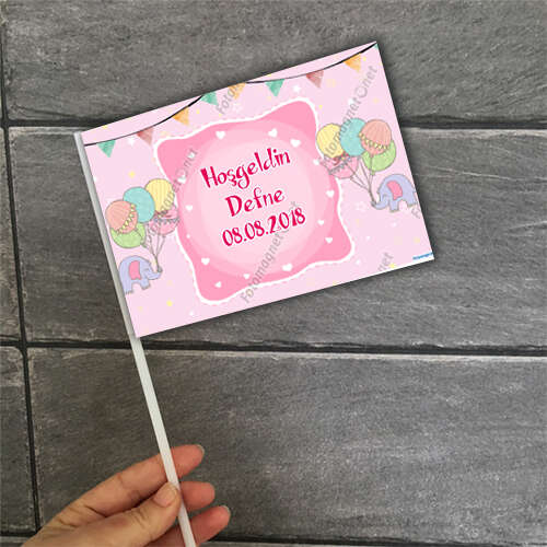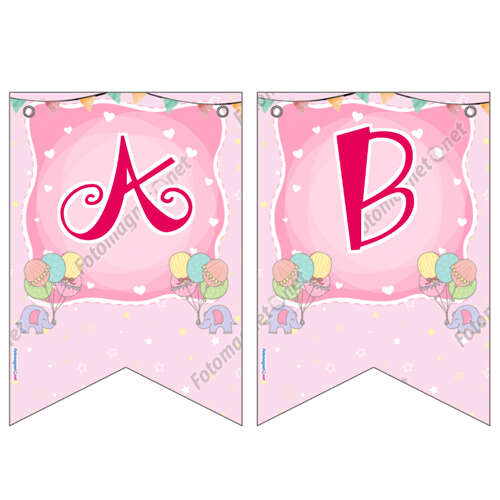 موضوع فيل البالون الوردي - مرحبًا بالطفل - لافتة - علم - مجموعة