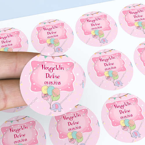 موضوع فيل البالون الوردي - مرحبًا بالطفل - تسمية زجاجة