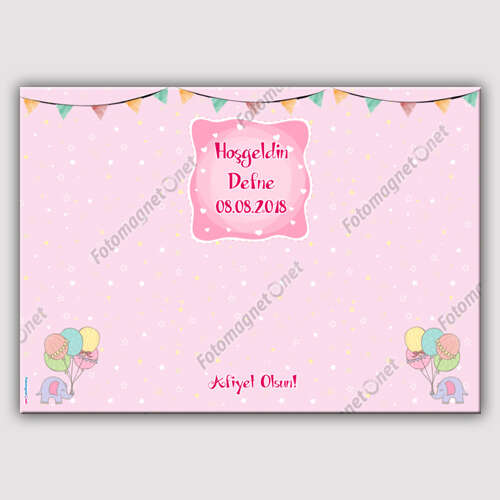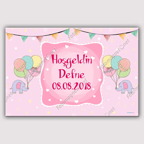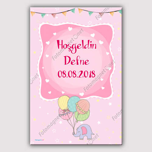 موضوع فيل البالون الوردي - مرحبًا بالطفل - أفقي - مغناطيس