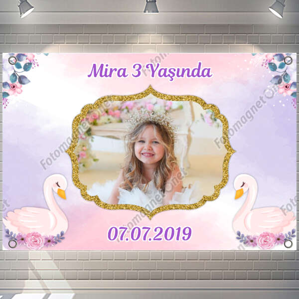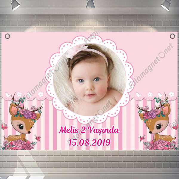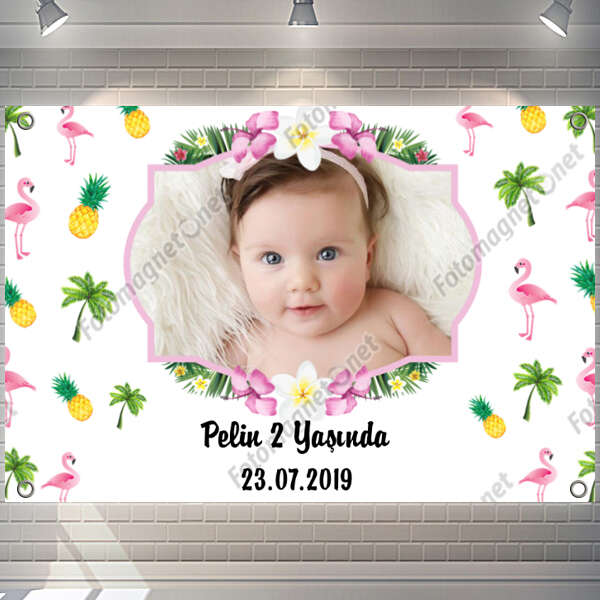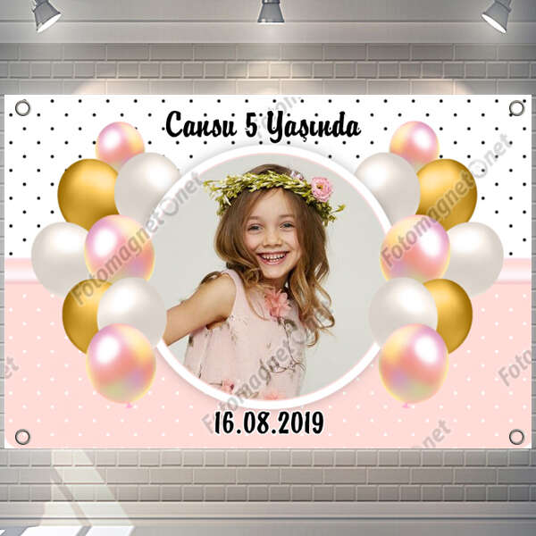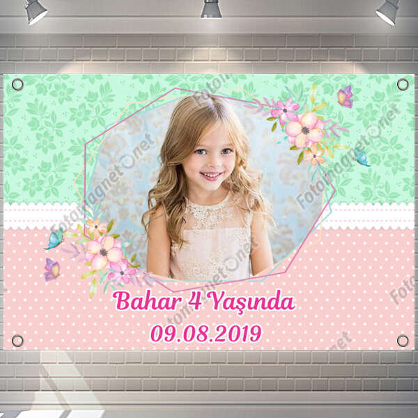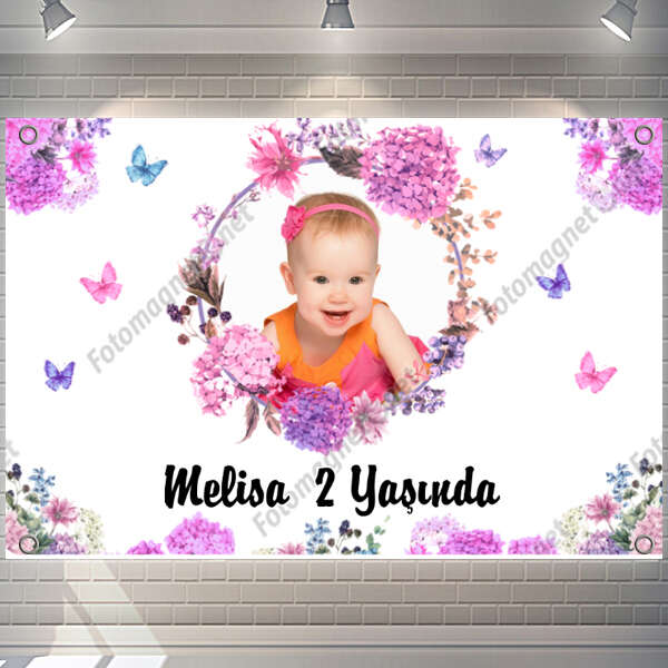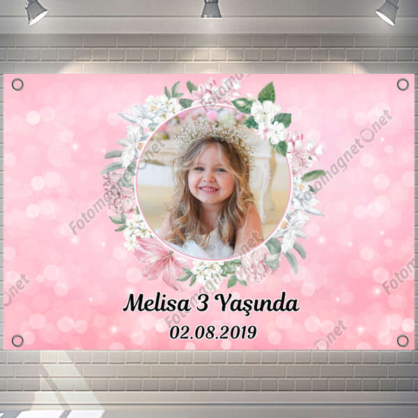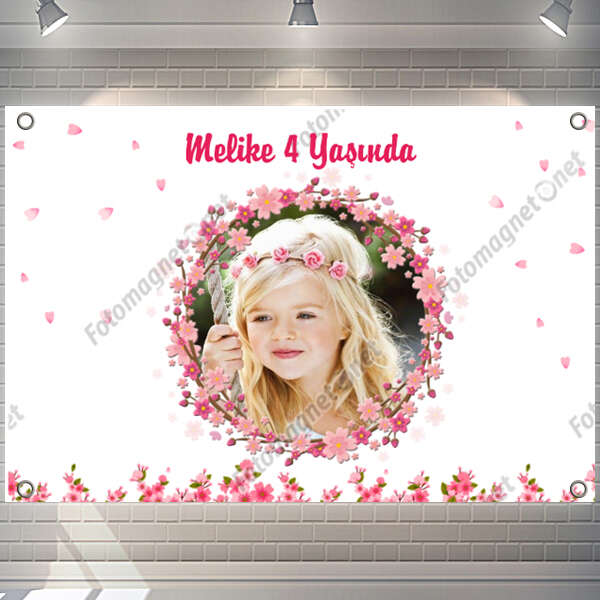 Pembe Beyaz Çiçek Çerçeveli - Doğum Günü Konsepti