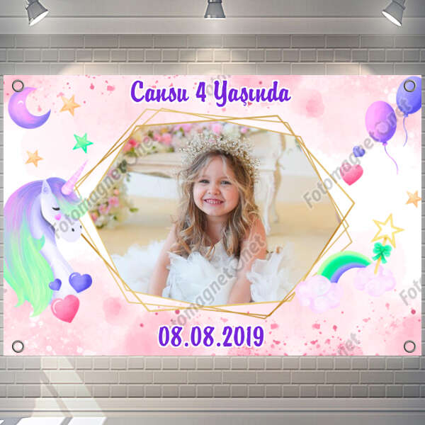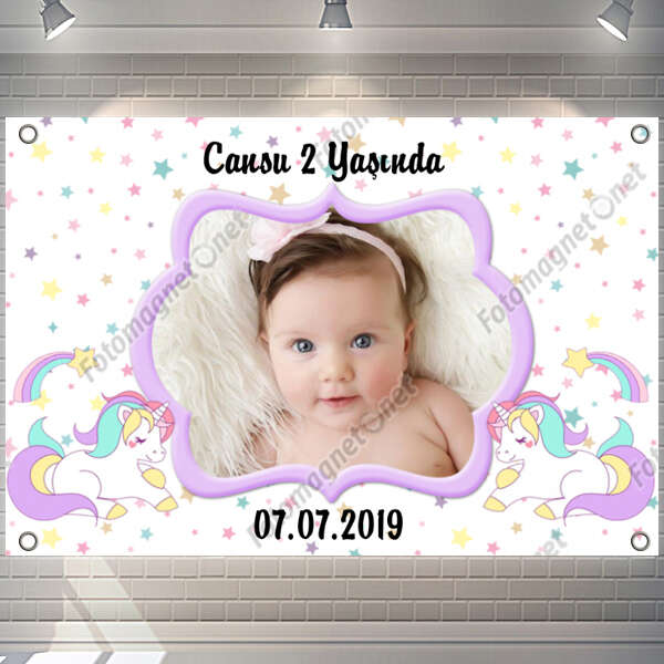 Unicorn Temalı Lila Çerçeveli - Doğum Günü Konsepti
