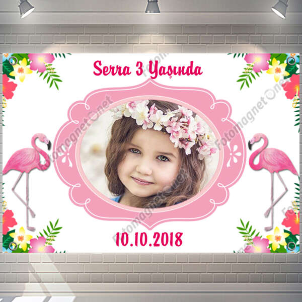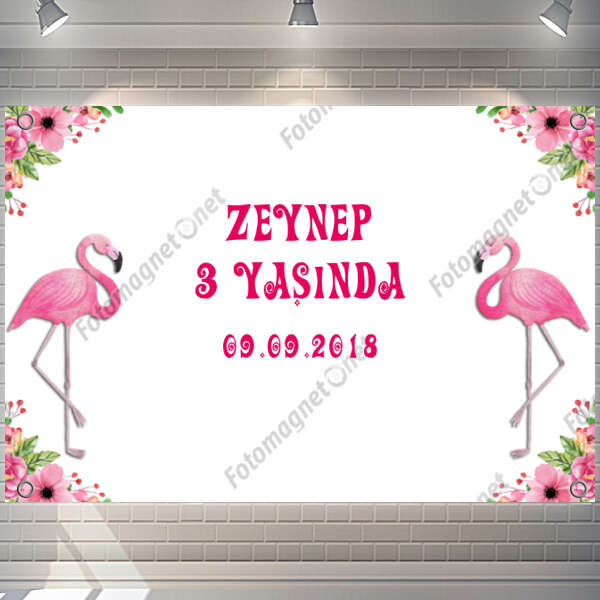 Flamingo Temalı Renkli Çiçekli - Doğum Günü Konsepti