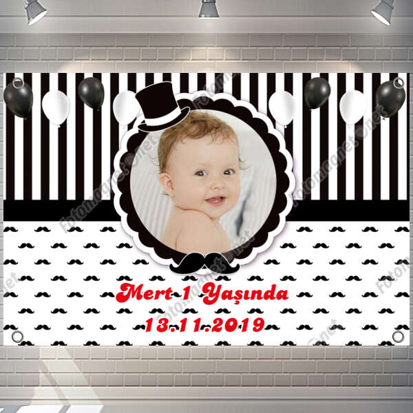 Siyah Beyaz Şapka Bıyık Temalı - Doğum Günü Konsepti