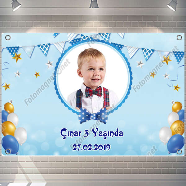 Papyonlu Mavi Dore Balonlu - Doğum Günü Konsepti
