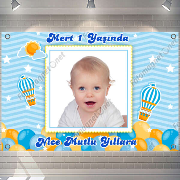 Uçan Balon Temalı Mavi Bir Yaş Konsepti