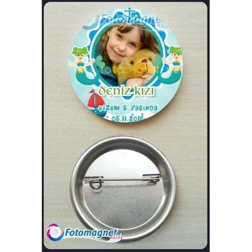 Mavi Deniz Kızı - Doğum Günü Partisi - Fotoğrafsız - İğneli Buton Rozet