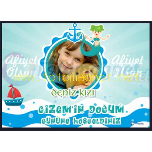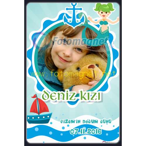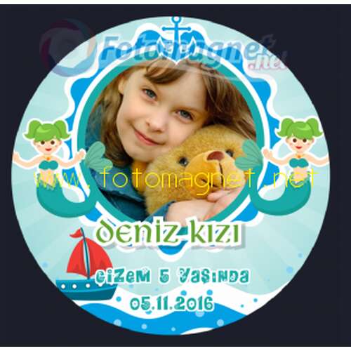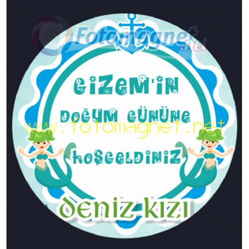 Mavi Deniz Kızı - Doğum Günü Partisi - Fotoğrafsız - İğneli Buton Rozet