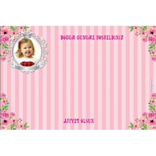 Çiçekli Prenses Temalı - Fotoğraflı - Peçete Sargısı