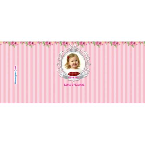 Çiçekli Prenses Temalı - Fotoğraflı - Karton Bardağı - Sargı Etiketi
