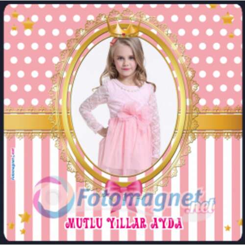 Prenses Taçlı Gold Çerçeveli - Fotoğraflı - Magnet
