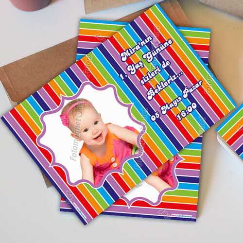 Renkli - Doğum Günü Konsepti - Zarflı Davetiye