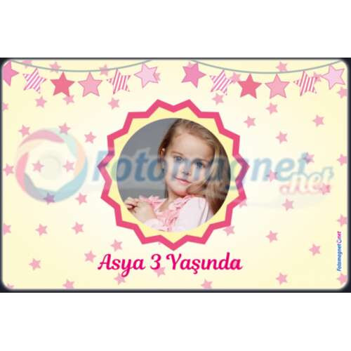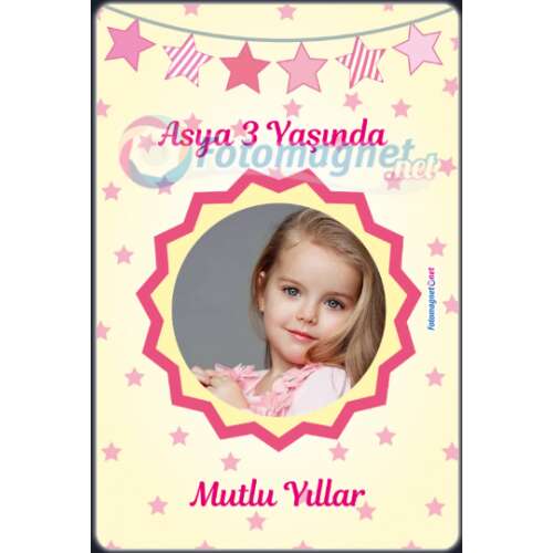 Pembe Yıldız Temalı - Fotoğraflı - Magnet