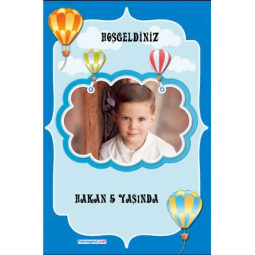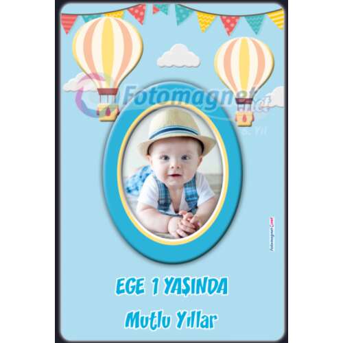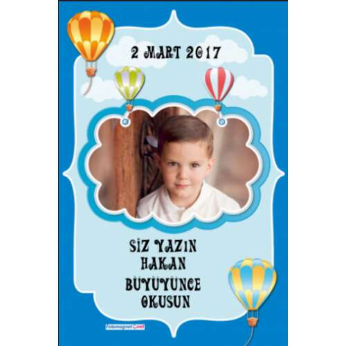 Uçan Balon Temalı - Fotoğraflı - Mavi Magnet