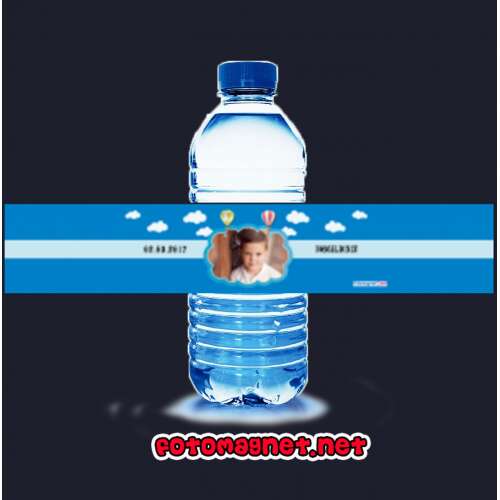 Uçan Balon Temalı Fotoğraflı - Su Şişesi Etiketi