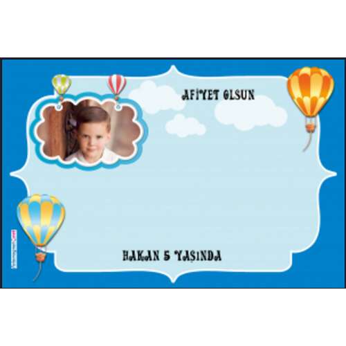 Uçan Balon Temalı - Fotoğraflı - Mavi Bardak - Sargı Etiketi